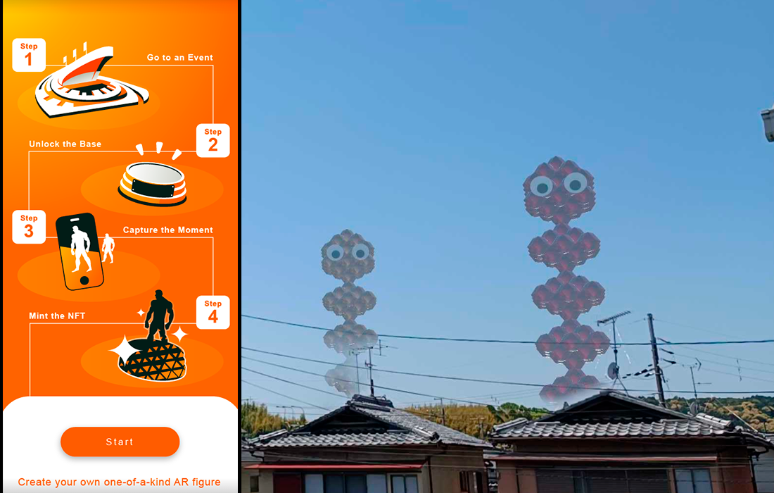 My first project was issued by the japanese giant Dentsu, and alongside an UI designer and a backend engineer, we built an AR app that allowed users to take pictures of their favorite sportsman or sportswoman during events and turn them into placeable AR NFT figures. The whole app was also integrated with an event ticketing system through QR code scan, so that only users that had a valid ticket for the event could issue their NFT scans.